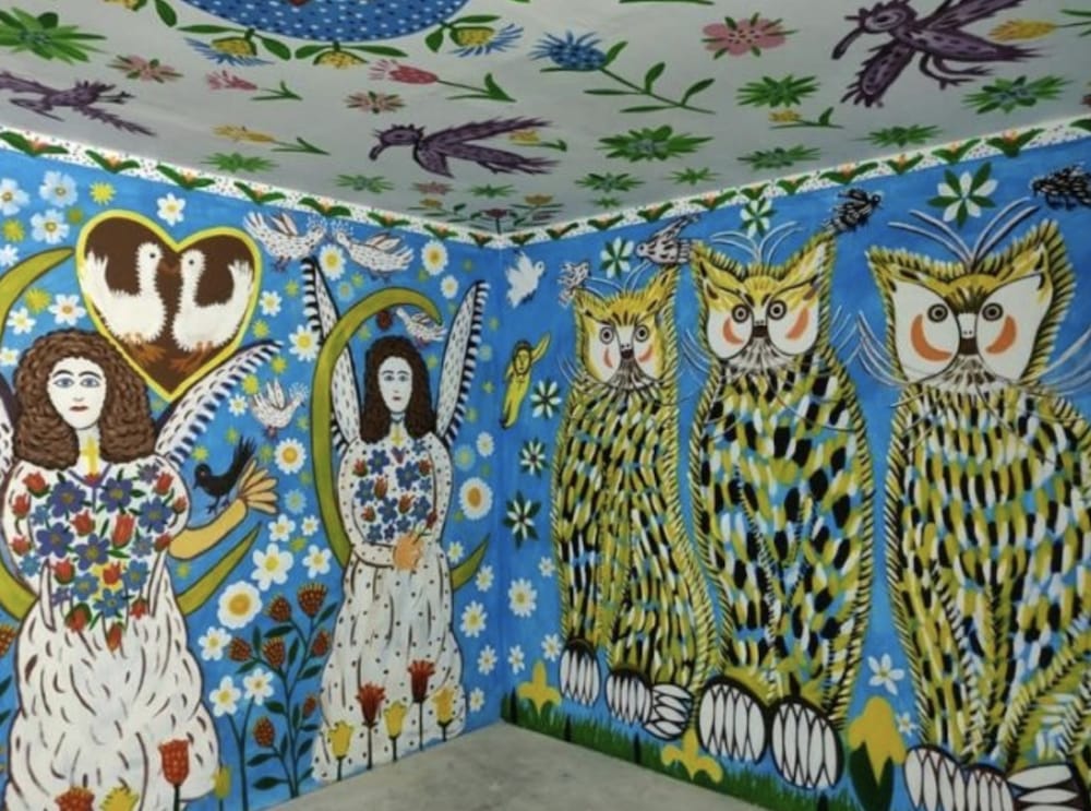 Polina Raiko (also spelled “Rayko”) didn’t start painting until she was 69 years old. After experiencing intense, subsequent life traumas, she picked up a paintbrush and began creating lush, colorful murals all over her home in southern Ukraine.